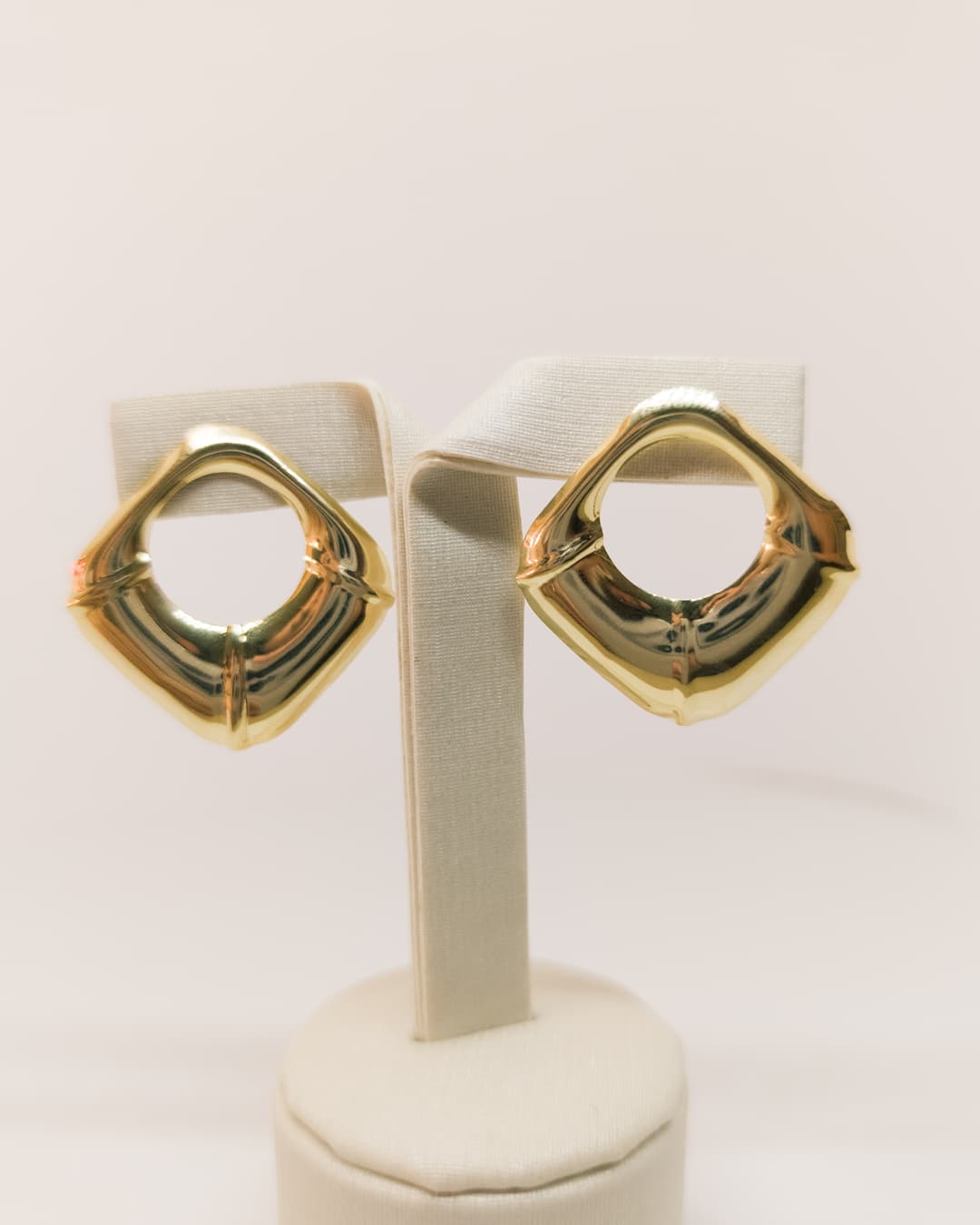 O formato quadrado rompe com a tradição circular das argolas clássicas, criando um visual arquitetônico e contemporâneo. A espessura robusta adiciona presença e modernidade ao design.